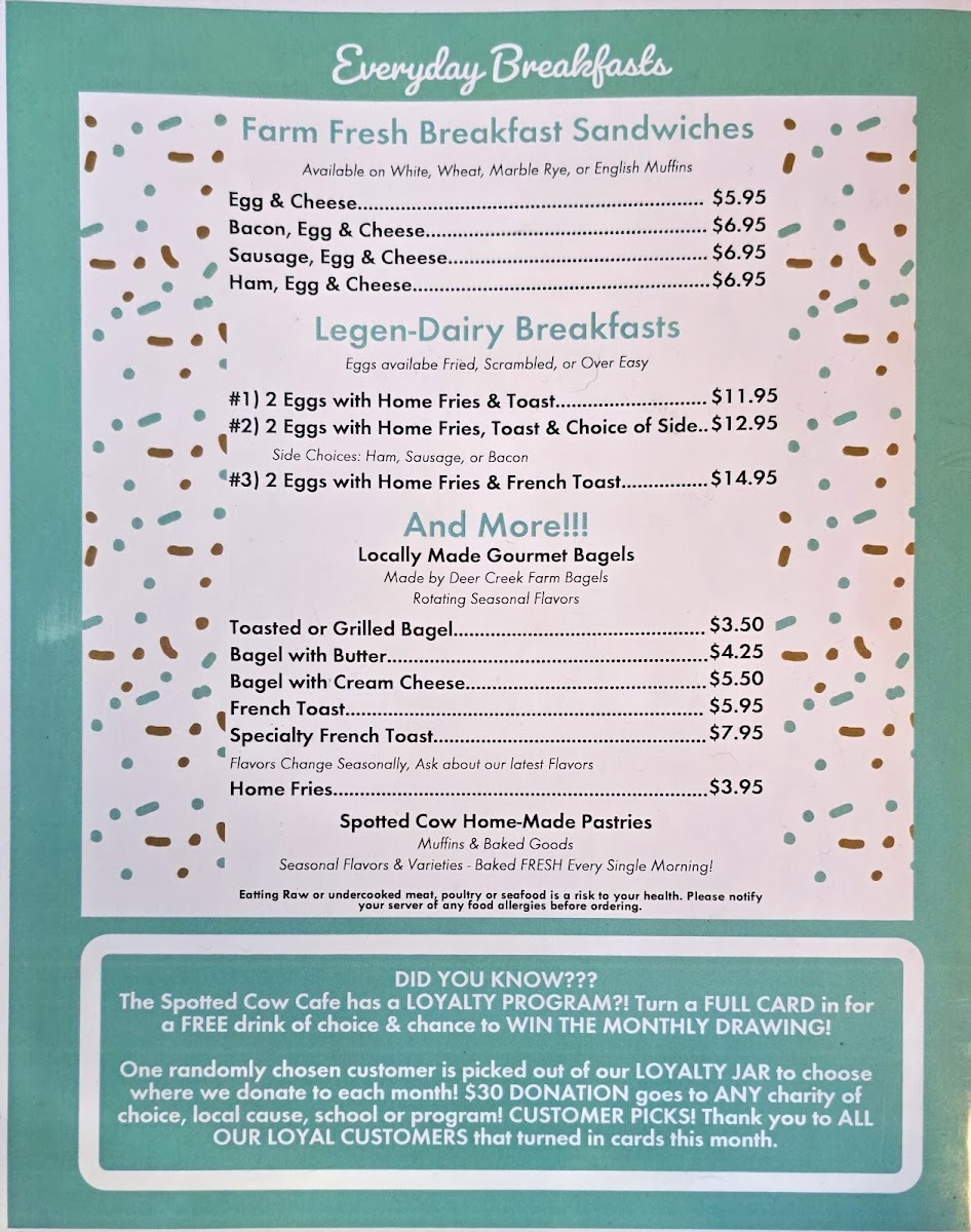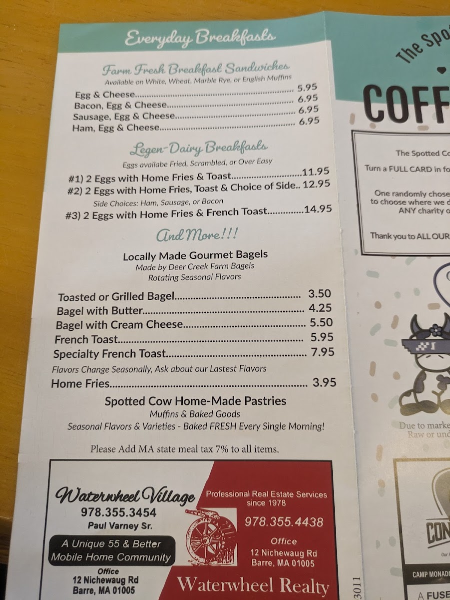 If you’re in the mood for a cozy spot to enjoy hearty meals, the Spotted Cow Cafe Menu has something to satisfy every craving. Located at 2291 West St in Barre, MA, this charming cafe serves up a variety of delicious options that range from comforting breakfast favorites to satisfying lunch specials. Whether you're in the mood for a light salad, a juicy burger, or a rich, creamy soup, you’ll find it here. Their fresh ingredients shine through in every bite, and the menu caters to all kinds of tastes and dietary preferences. The Spotted Cow Cafe is perfect for those looking for a relaxed atmosphere, where every meal feels like a warm hug. It’s a great spot to catch up with friends over a coffee or grab a quick bite before heading out for the day.